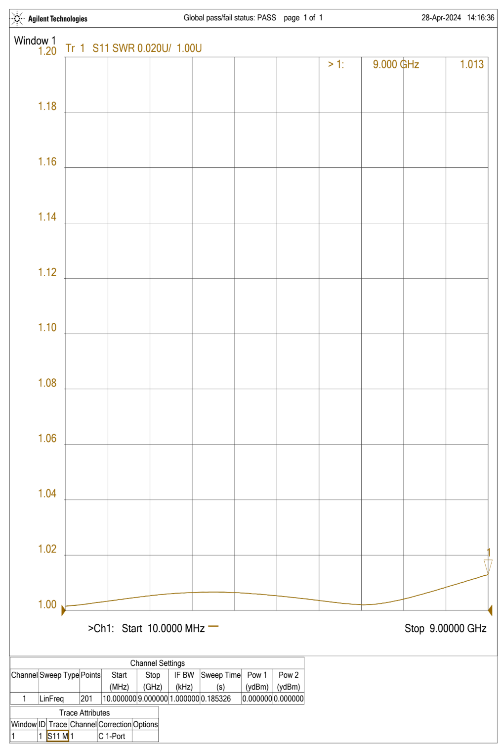 Measurements are provided to 9 GHz. For measurements to 20 GHz please add the measurement upgrade to your order.